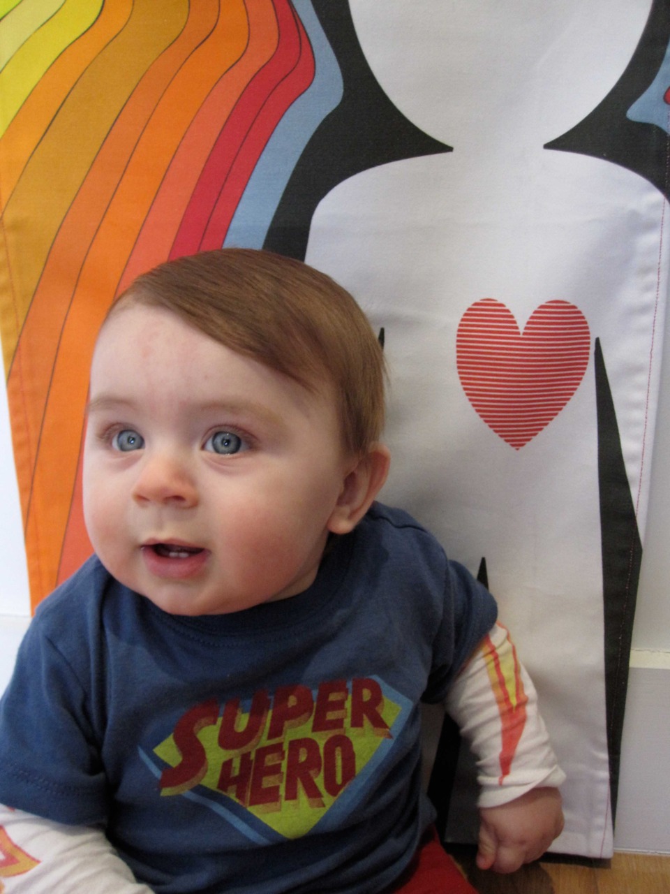 ← Daddy bought this totally unique and colorful growth chart for Luca. We hung it up in the hallway a